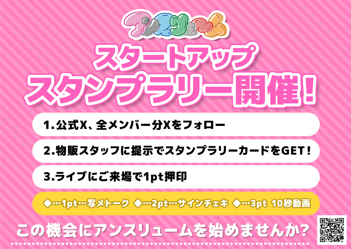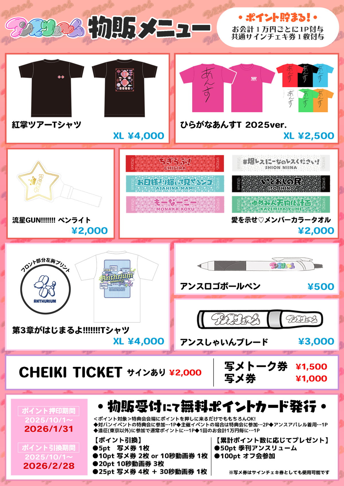 アンスリュームが出演するイベントでは、ライブ終了後に「特典会」を実施しております。特典会では主に、メンバーとのチェキ撮影をお楽しみいただけます。